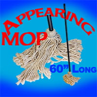 Magik wychodzi na scenę z małym wiaderkiem. Rozgląda się i szuka mopa, by zmyć podłogę po poprzednim efekcie (np. po misach z wodą). Nie mogąc znaleźć mopa, postanawia zajrzeć do wiadra i wyciąga z niego mopa na długim kiju!