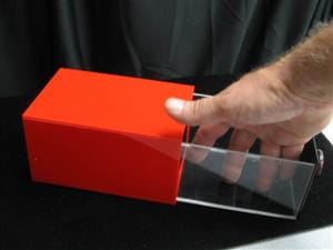 Przeźroczysta szuflada w bardzo poręcznym rozmiarze: 6″ x 4″ x 3″ (rozmiar podany w calach), która pomieści różne przedmioty do pojawiania i znikania: gołębia, małego królika, myszy, ale również kolorowe, papierowe kwiaty, chusty i inne.