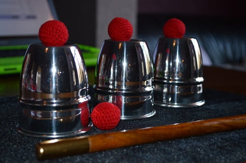 Trzy małe piłeczki umieszczone w trzech metalowych kubkach w magiczny sposób przeskakują z kubka do kubka, całkowicie znikają i pojawiają się ponownie! To klasyczny trick, który do dziś wywołuje ogromne emocje!