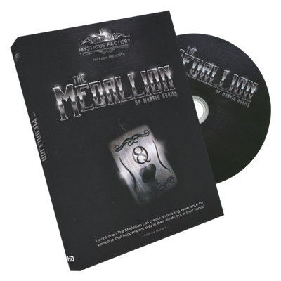 Dwóch widzów wybiera dwie karty, po jednej każdej. Wyciągasz medalion i wygrawerowaną na nim kartę.