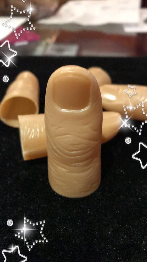 Bardzo klasyczny sztuczny kciuk z twardego plastiku.
