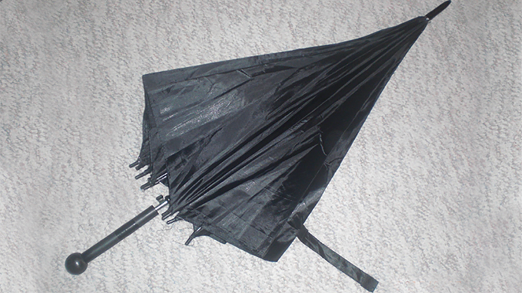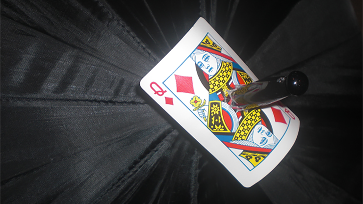 Iluzjonista prezentuje zamknięty parasol. Trzymamy jest za rączkę, a końcówka wycelowana ku górze. Talia kart trzymana jest w drugiej ręce. Teraz magik strzela kartami nad parasol… Szybkim ruchem otwiera go i… oto wybrana przez widza karta nabita jest na końcówkę parasola!